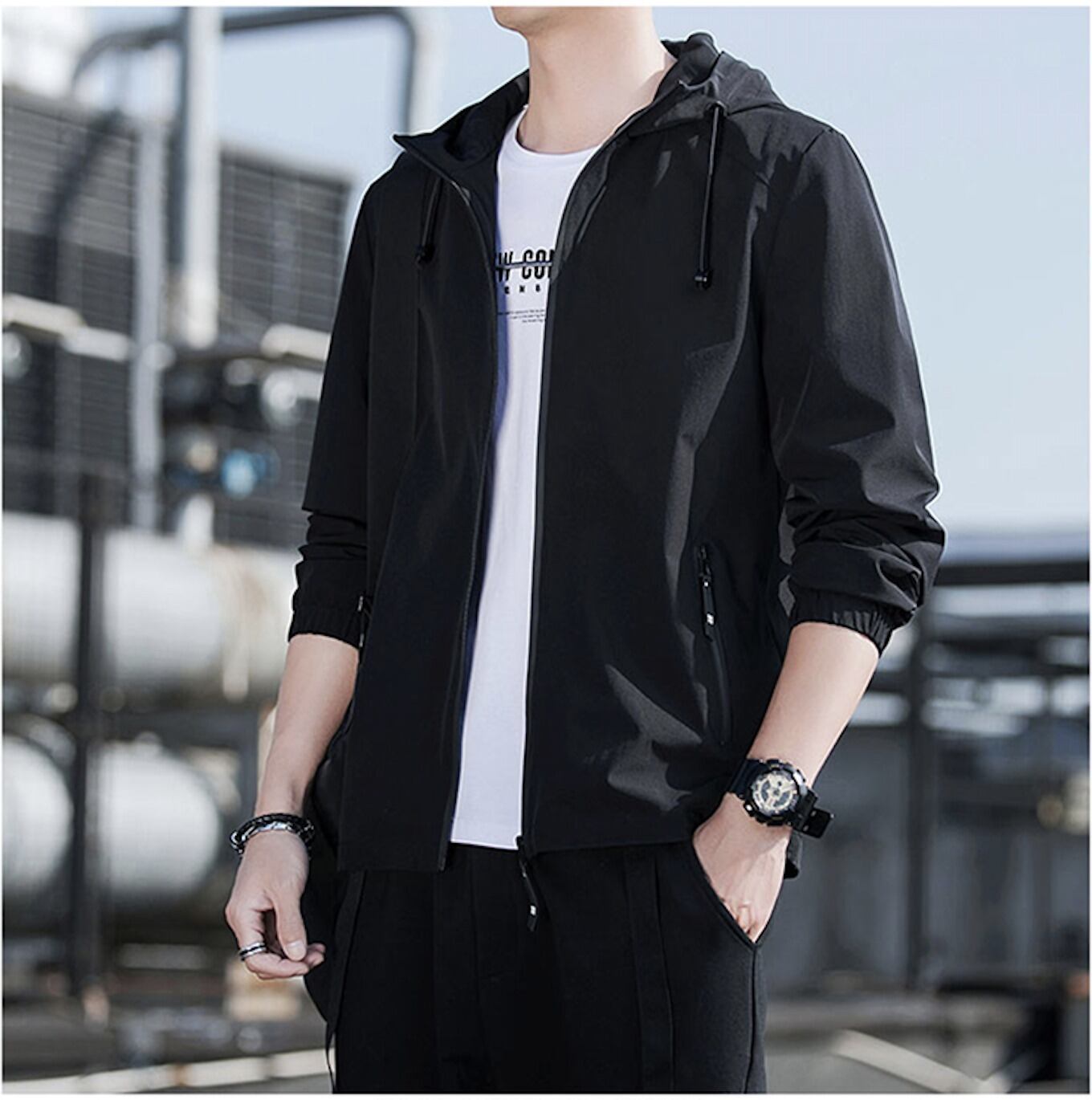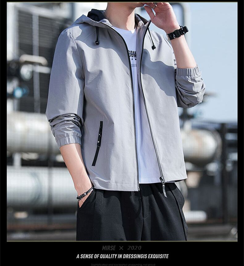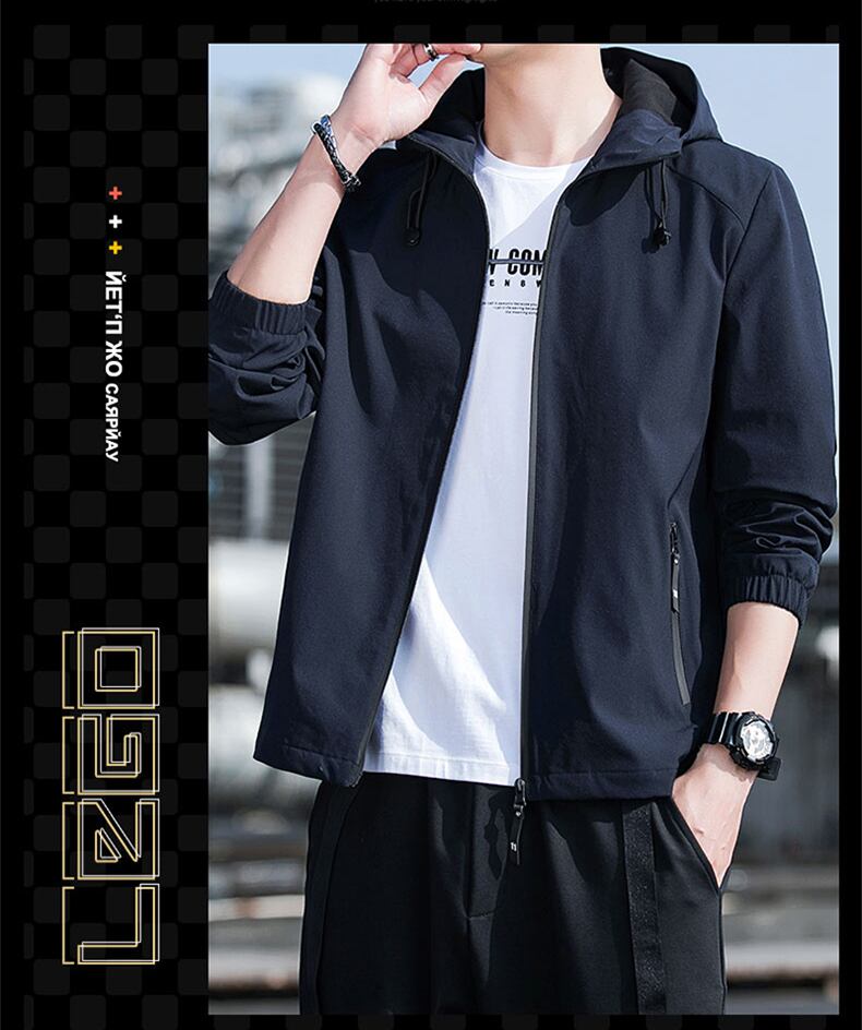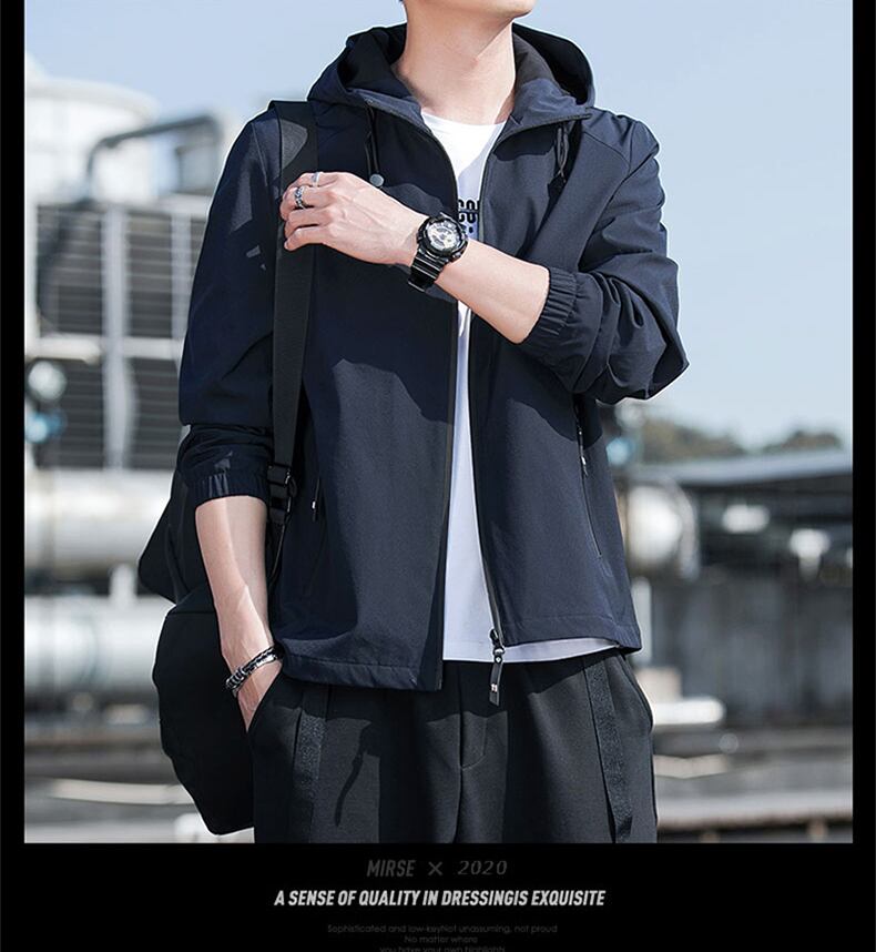 ●しっかりとした高品質な素材を使用し、防風性に優れたフード付きブルゾンです。フロントに特製のファスナーが裾から首元まで留めることができます。
