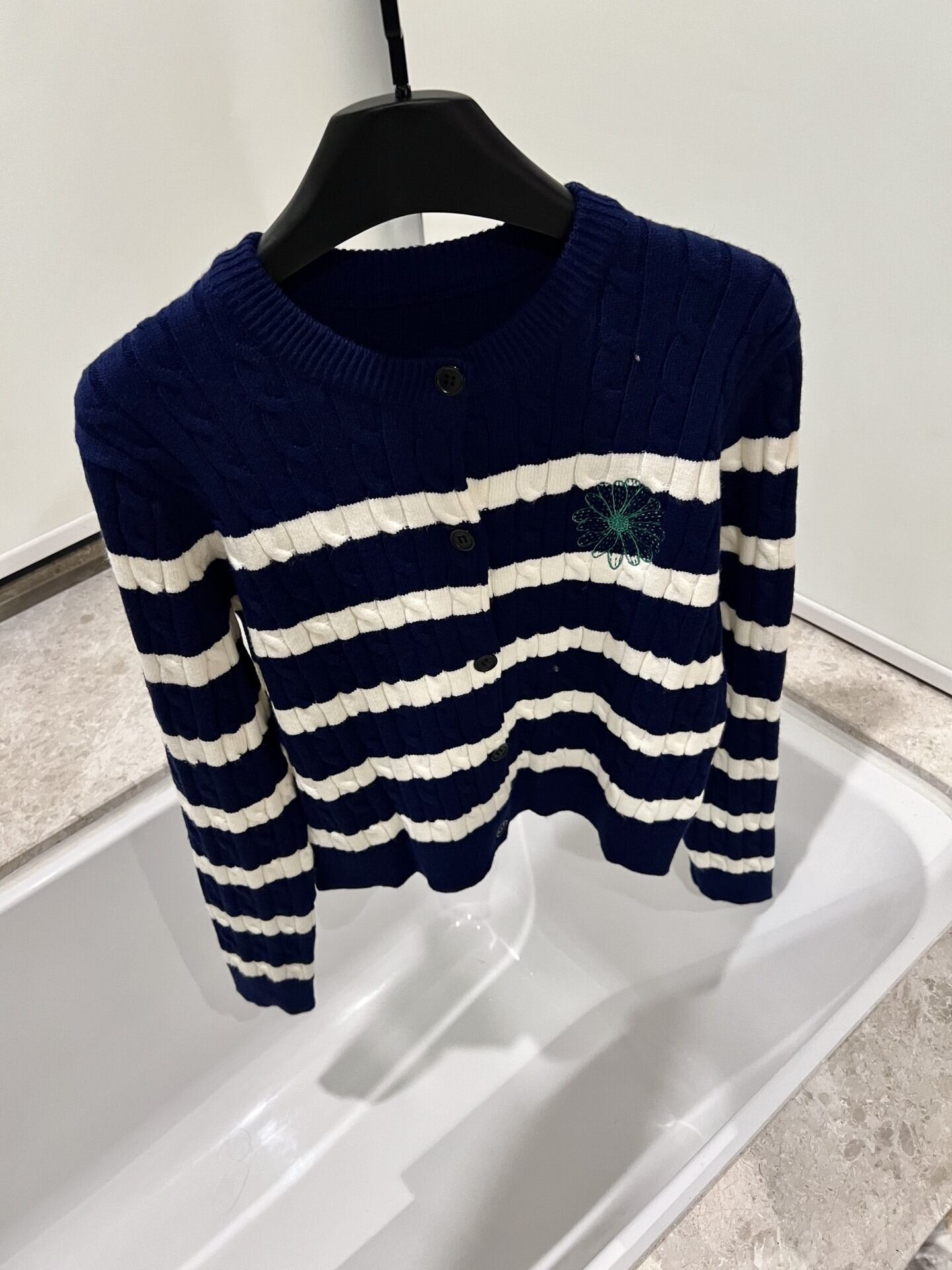 マルディメクルディ ストライプ レディース 長袖 クルーネック ニット カーディガン | カドルコーナー