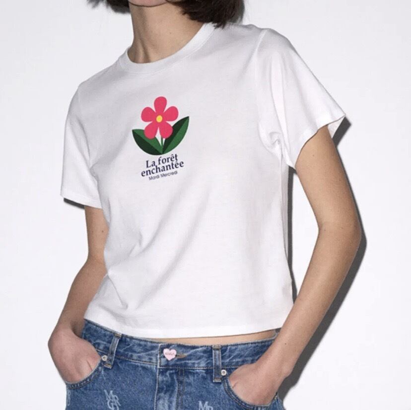 マルディメクルディ フラワー レディース クルーネック 半袖 ショート Tシャツ